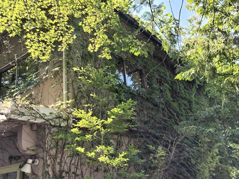 この時期のツタの生育はすごいですね!私も、リパになった気分で、ツタをすこし切り、虫さんにどいてもらい、スッキリ・・・。綺麗な空間になりました。